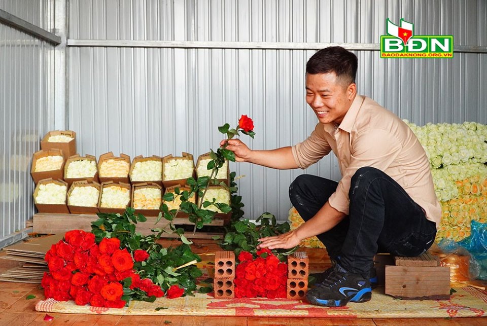 Hoa hồng thường đang được anh Đào Xuân Anh cắt bán tại vườn với giá từ 3.000 đồng – 5.000 đồng/bông; hồng giống ngoại có giá cao hơn, khoảng 6.000 đồng – 9.000 đồng/bông tùy thời điểm. Vào những dịp lễ như ngày Quốc tế phụ nữ 8/3 vừa qua, mỗi ngày vườn hoa cung cấp ra thị trường khoảng 5.000 bông. Còn các ngày thường thì duy trì đều đặn trên 1.000 bông tại các thị trường ở Gia Nghĩa và TP. Hồ Chí Minh…