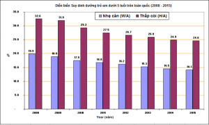 Còn theo khảo sát của Viện Dinh dưỡng Quốc gia, trong 8 năm 2007-2015, tỷ lệ suy dinh dưỡng thể nhẹ cân ở trẻ em dưới 5 tuổi đã giảm từ 21,2% xuống còn 14,1%. Tỷ lệ thấp còi giảm từ 33,9% xuống còn 24,5%.