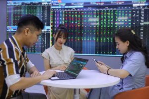 Giao dịch tại một sàn chứng khoán ở quận 1, TP HCM.