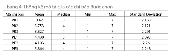 Kết quả phân tích thống kê mô tả của các chỉ báo trên được hiển thị trong Bảng 4 dưới đây: