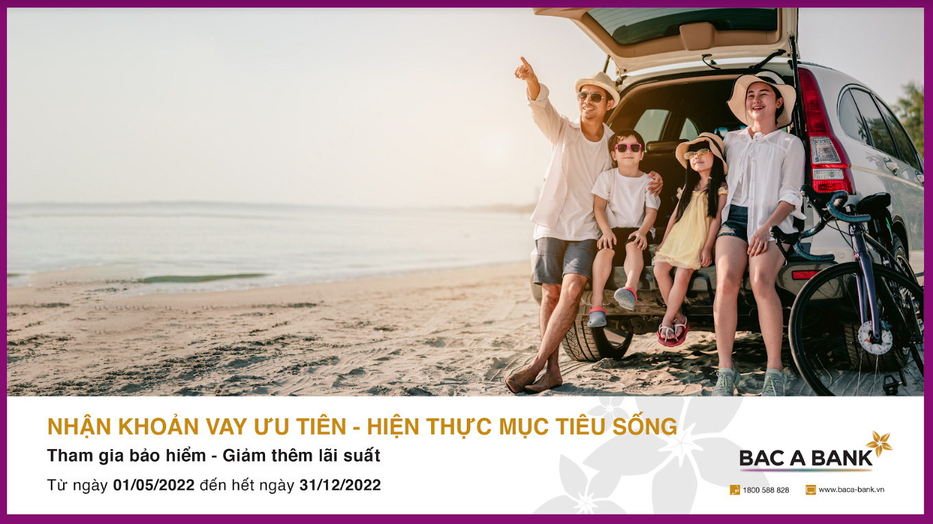 Từ ngày 01/05/2022 đến hết 31/12/2022, Ngân hàng TMCP Bắc Á (BAC A BANK) triển khai Chính sách ưu đãi lãi suất hấp dẫn trong khuôn khổ Chương trình “Nhận khoản vay ưu tiên – Hiện thực mục tiêu sống”, áp dụng cho Khách hàng cá nhân vay vốn tại BAC A BANK đồng thời đăng ký tham gia Bảo hiểm nhân thọ Dai-ichi Life Việt Nam.