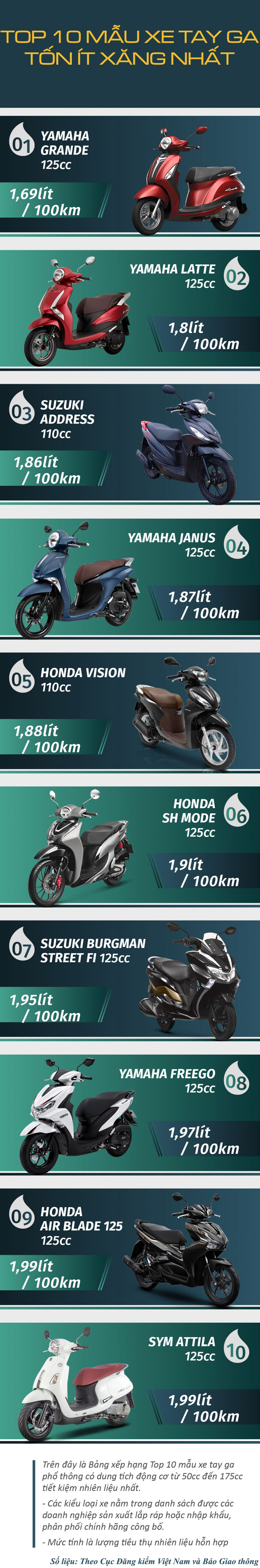 Top 10 xe tay ga tiết kiệm xăng nhất thị trường Việt Nam hiện nay